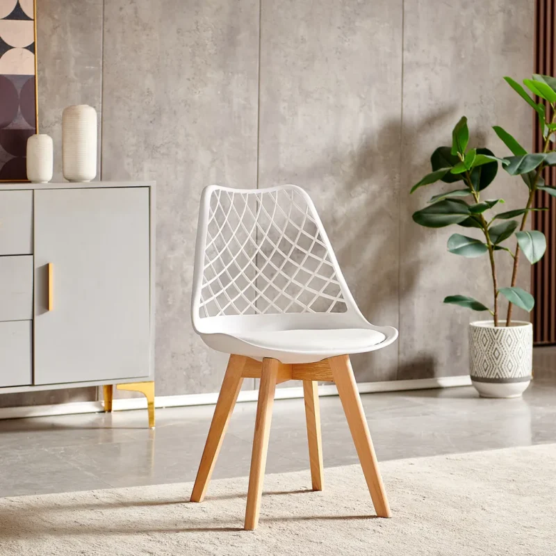 Mesh Back Style Cushion Seated Dining Chair (White)