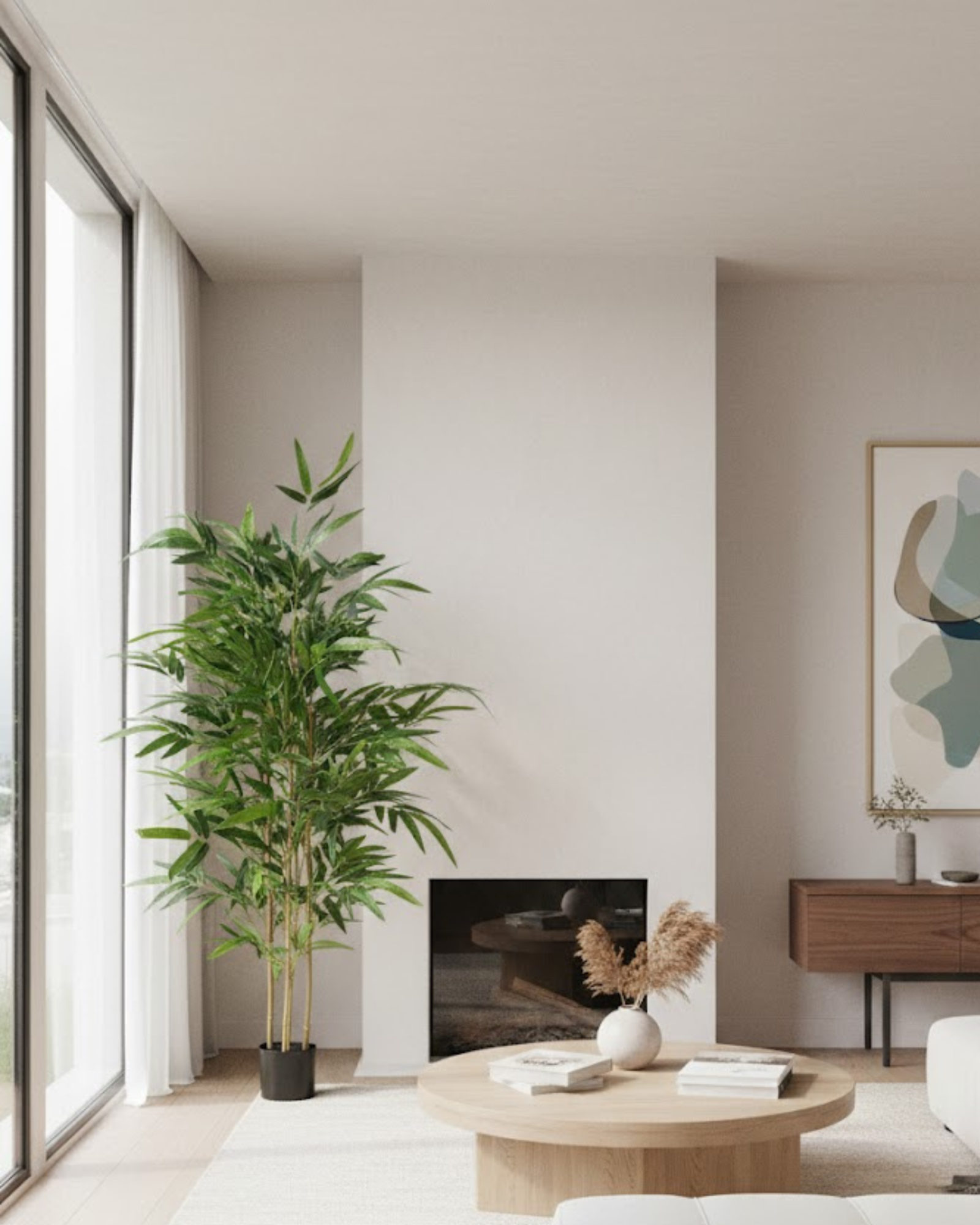 Perfect for homes, offices, hotels, restaurants, and commercial spaces, this artificial bamboo tree adds height, texture, and a sophisticated touch — all without the maintenance required by live plants.