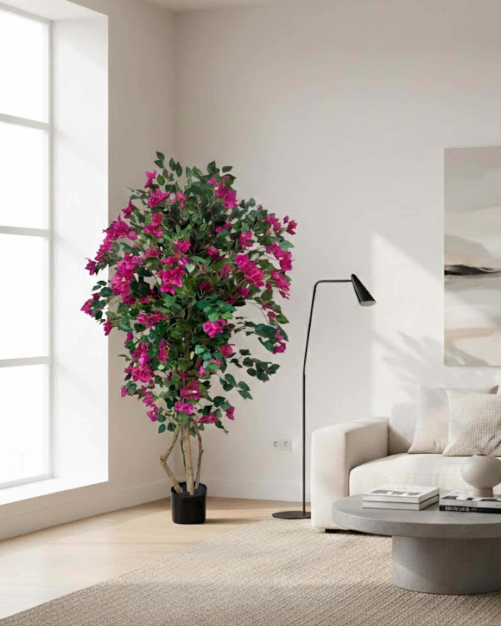 Add a touch of color and elegance to your space with this Artificial Bougainvillea Tree. Designed with lush green leaves and bright, realistic blooms, it beautifully recreates the charm of natural bougainvillea.