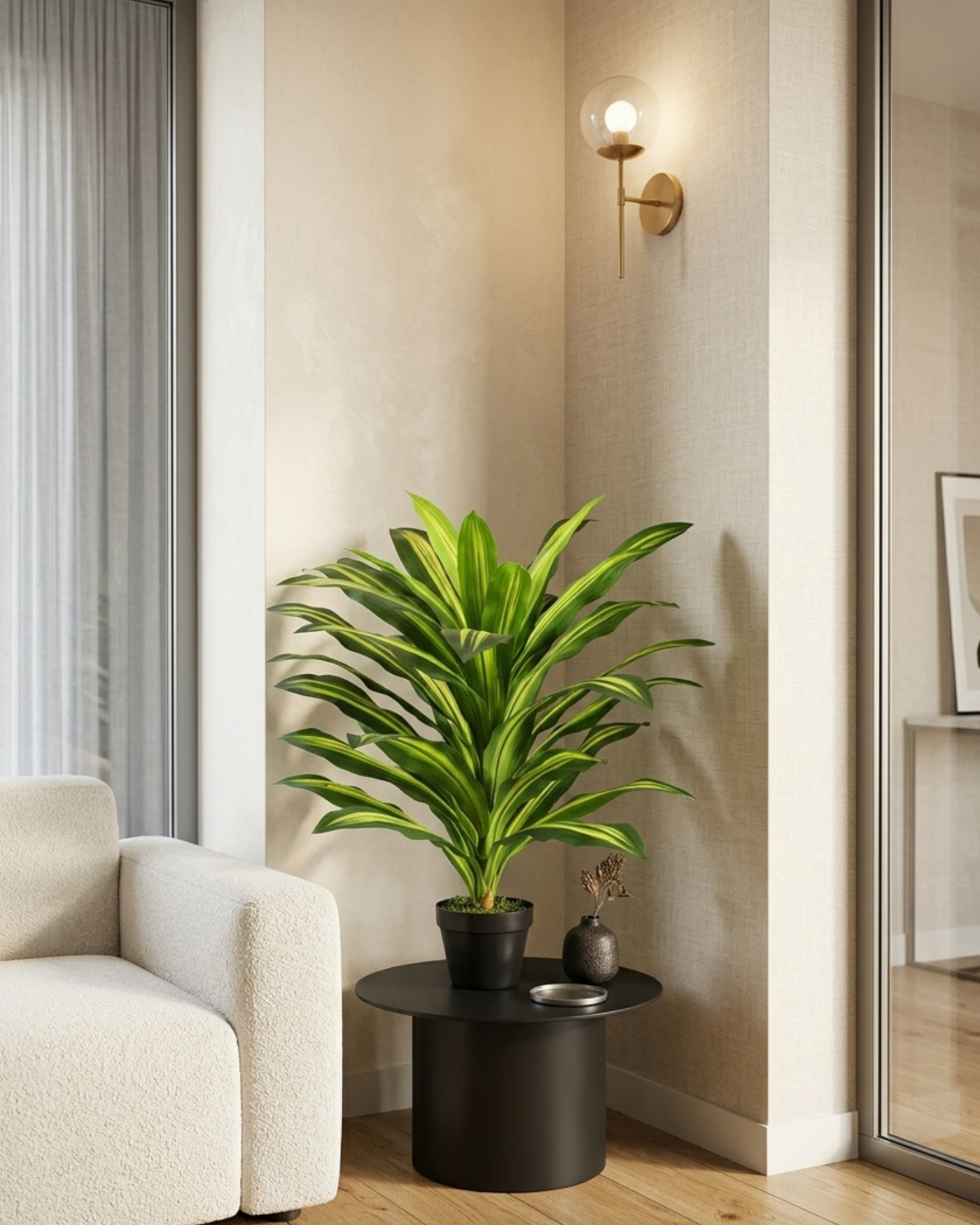 Enhance your interior with the elegant look of our Artificial Dracaena Tree. Designed to closely resemble a real dracaena plant, it features finely detailed leaves, a realistic trunk, and a balanced natural shape—making it a perfect décor solution for both residential and commercial spaces.