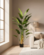 Bring the lush, tropical appeal of the famous Giant White Bird of Paradise into your home or business — without any of the maintenance required by a real plant. This stunning artificial plant captures the bold architecture and elegant silhouette of the natural Strelitzia nicolai — known for its large, paddle-shaped leaves and dramatic upright form. It’s an ideal statement piece for interiors that need a touch of greenery and sophistication.