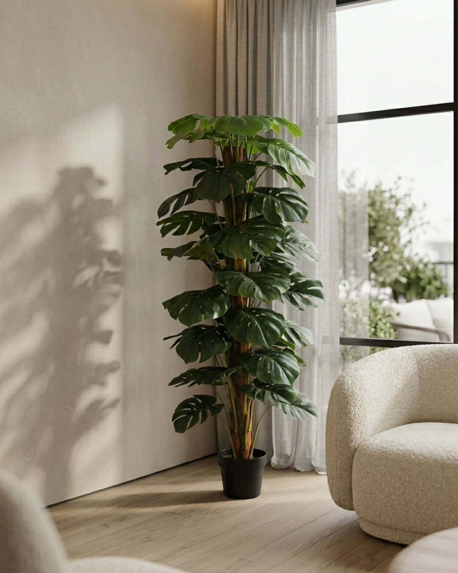 Transform your space with the bold and timeless beauty of this Artificial Monstera Deliciosa Tree. Featuring large, split leaves with signature cut-out patterns, this plant is expertly crafted to replicate the iconic look of a real monstera, bringing a vibrant tropical feel to any interior.