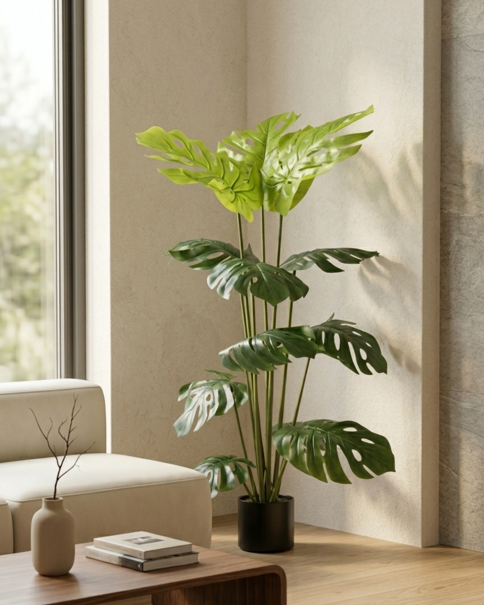Transform your space with the bold and timeless beauty of this Artificial Monstera Deliciosa Tree. Featuring large, split leaves with signature cut-out patterns, this plant is expertly crafted to replicate the iconic look of a real monstera, bringing a vibrant tropical feel to any interior.
