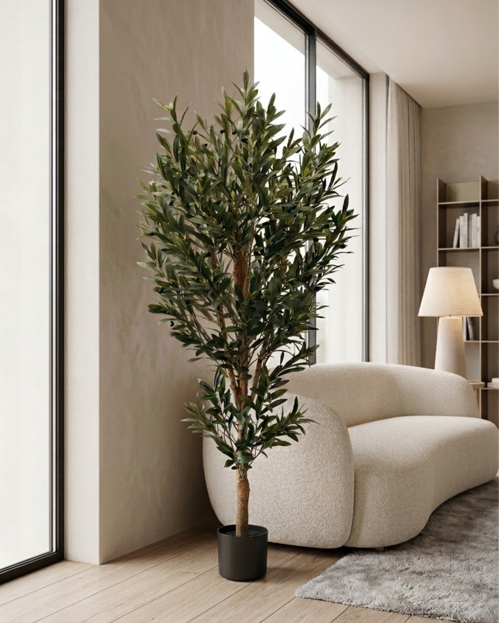 Bring a soft, organic touch to your décor with this Artificial Olive Tree. Designed with slender, silvery-green leaves and delicately detailed branches, it beautifully captures the elegance of a real olive tree. The natural-looking trunk enhances its authentic appearance, creating a warm and timeless aesthetic.