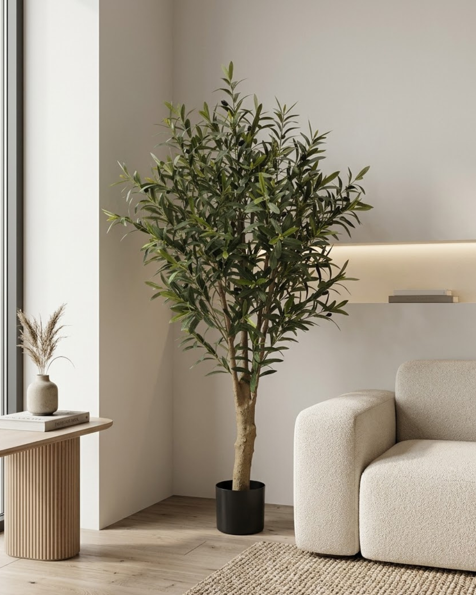 Bring a soft, organic touch to your décor with this Artificial Olive Tree. Designed with slender, silvery-green leaves and delicately detailed branches, it beautifully captures the elegance of a real olive tree. The natural-looking trunk enhances its authentic appearance, creating a warm and timeless aesthetic.
