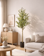 Crafted from high-quality, durable materials, this tree maintains its fresh and graceful look throughout the year without fading or losing shape. Its balanced structure and realistic detailing make it a refined decorative piece that adds texture and depth to any interior setting.