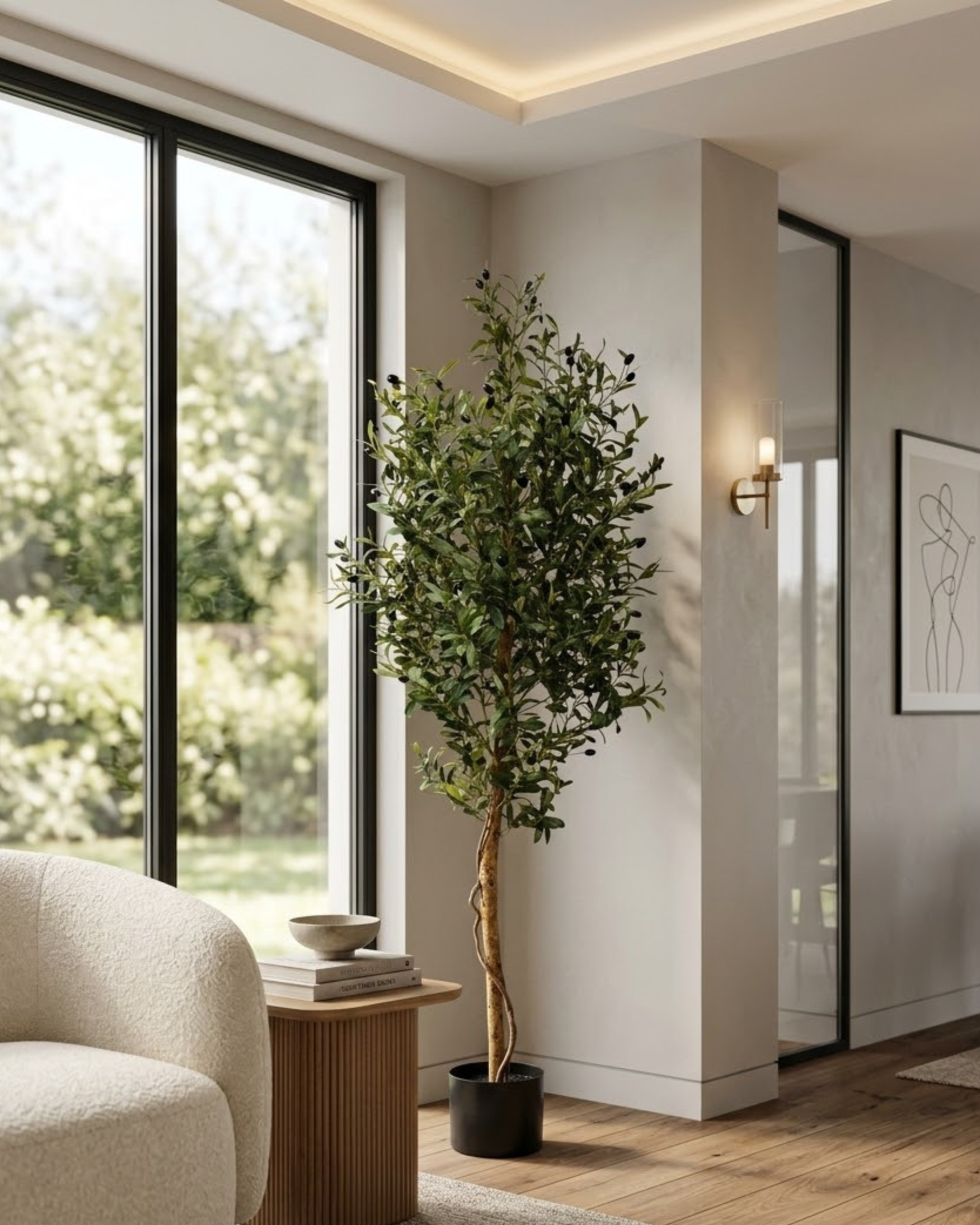 Bring a soft, organic touch to your décor with this Artificial Olive Tree. Designed with slender, silvery-green leaves and delicately detailed branches, it beautifully captures the elegance of a real olive tree. The natural-looking trunk enhances its authentic appearance, creating a warm and timeless aesthetic.