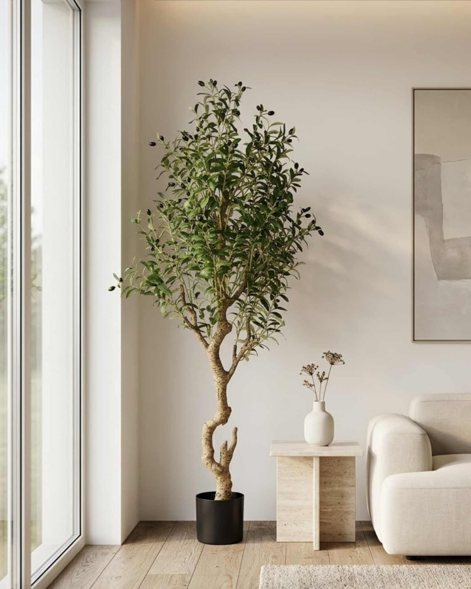 Bring a soft, organic touch to your décor with this Artificial Olive Tree. Designed with slender, silvery-green leaves and delicately detailed branches, it beautifully captures the elegance of a real olive tree. The natural-looking trunk enhances its authentic appearance, creating a warm and timeless aesthetic.