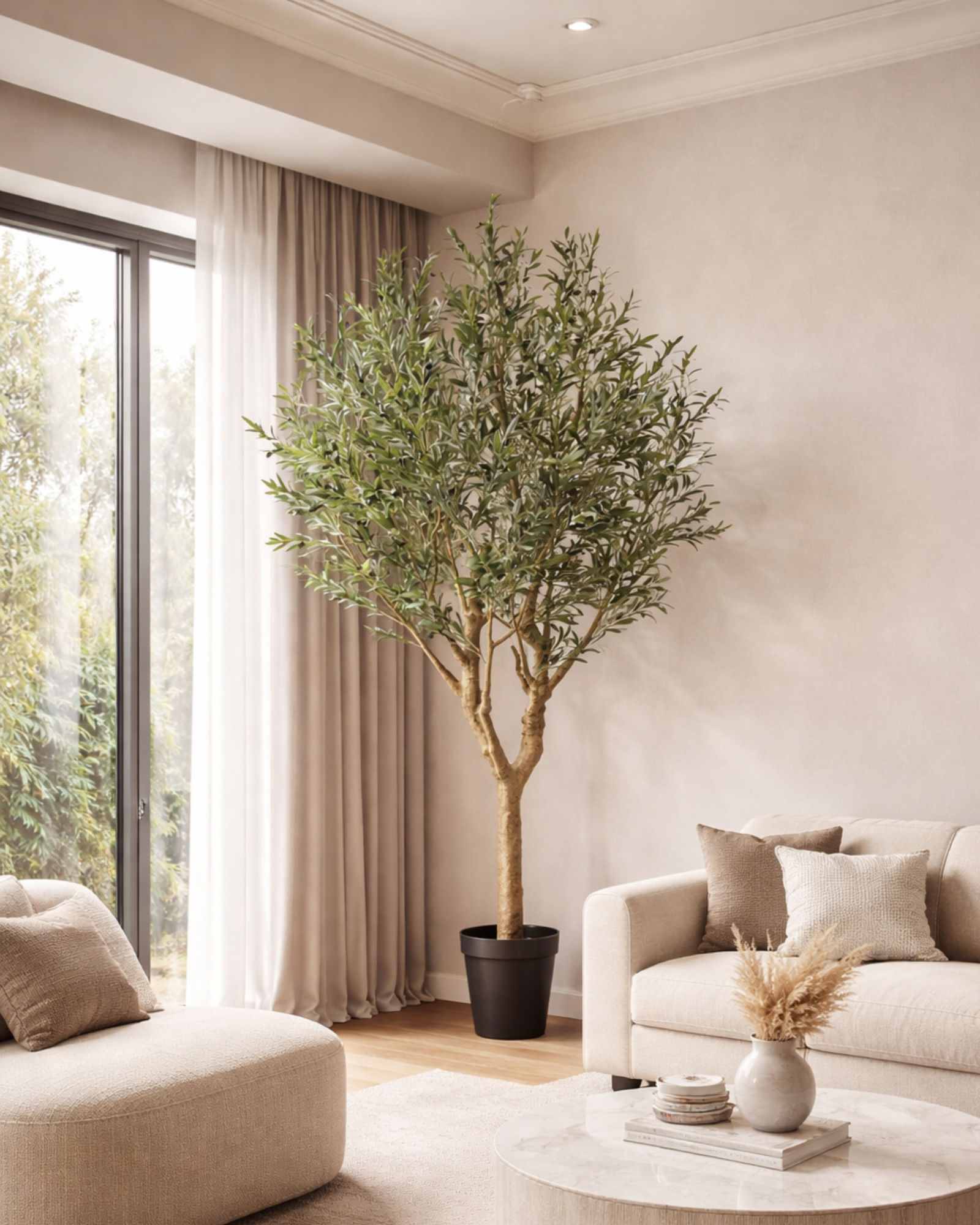 Bring a soft, organic touch to your décor with this Artificial Olive Tree. Designed with slender, silvery-green leaves and delicately detailed branches, it beautifully captures the elegance of a real olive tree. The natural-looking trunk enhances its authentic appearance, creating a warm and timeless aesthetic.