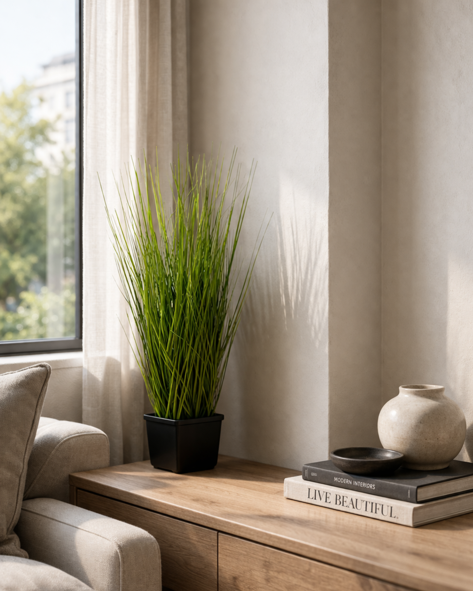 Add a touch of natural warmth and contemporary style to your space with our Artificial Pampas Grass Plant. Designed with soft, full plumes and realistic texture, this decorative plant creates a calm and sophisticated atmosphere for homes, offices, hotels, cafés, and event settings.