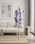 Crafted from high-quality materials, the orchid maintains its fresh and vibrant appearance throughout the year. It is ideal for decorating homes, offices, hotels, flower shops, event venues, and commercial interiors. The flexible stem allows easy styling in vases or floral arrangements, making it a perfect choice for creating modern and luxurious decorative displays.