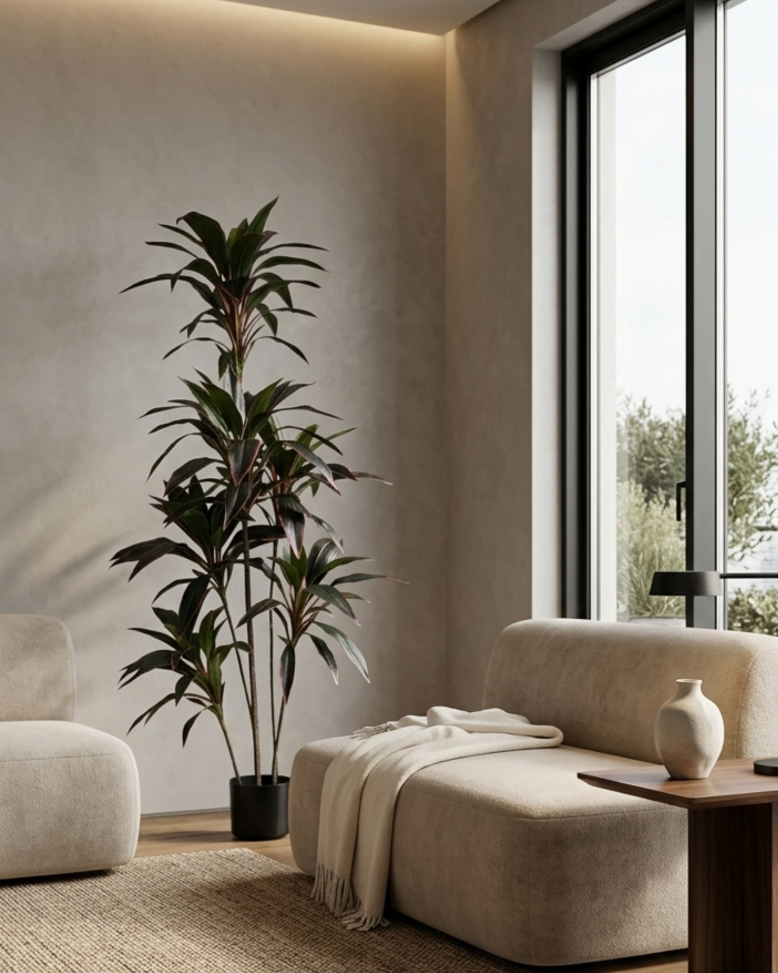 Its architectural shape makes it a perfect statement piece for modern interiors, adding height, texture, and a fresh green touch to any room. Ideal for living rooms, offices, showrooms, hotels, and reception areas, it instantly enhances the ambiance with a clean and contemporary feel.